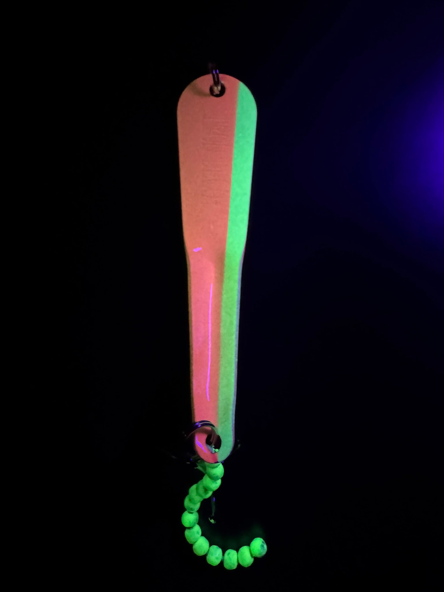 The glow-in-the-dark colors were crafted to attract a variety of fish, including bluegill, perch, crappie, trout, kokanee, walleye, steelhead, salmon, lake trout, and northern pike.