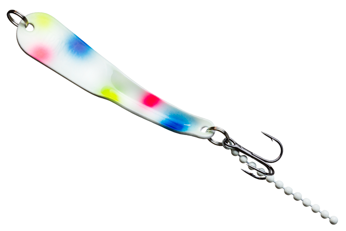 The glow-in-the-dark colors were crafted to attract a variety of fish, including bluegill, perch, crappie, trout, kokanee, walleye, steelhead, salmon, lake trout, and northern pike.